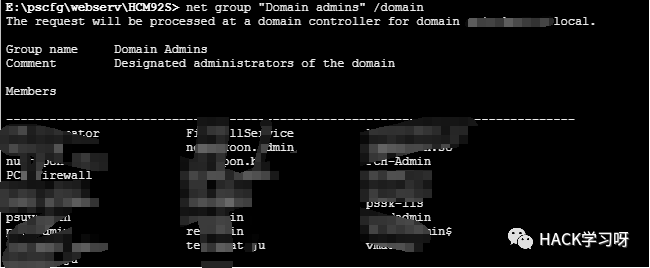 net use查看当前域管理员组,发现psvadmin为域管理员。