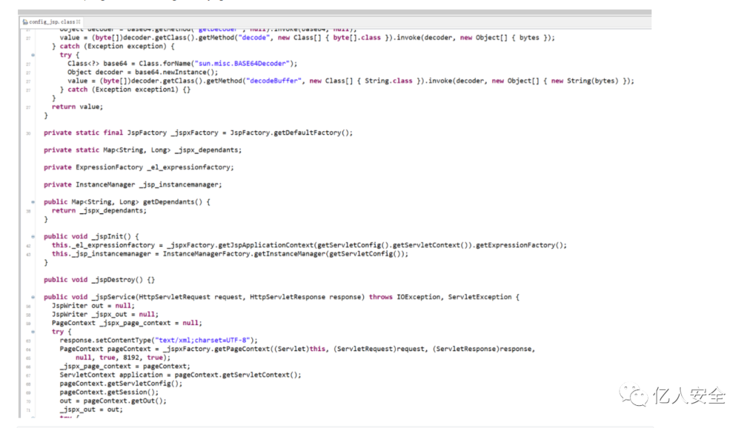 package com.Test.Basic;import javassist.CannotCompileException;import javassist.ClassPool;import javassist.CtClass;import javassist.NotFoundException;import java.io.IOException;import java.nio.charset.StandardCharsets;import java.util.Base64;public class Echo_Base64 { private static String parseByte2HexStr(byte[] buf){