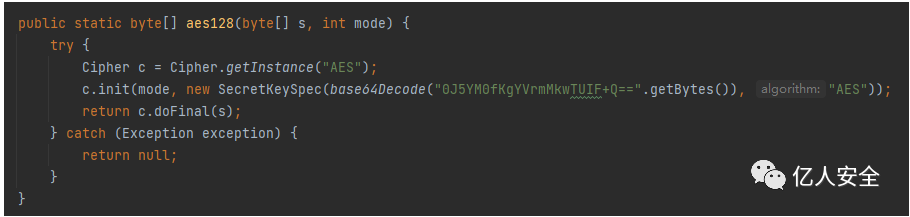 SecretKeySpec key = new SecretKeySpec(base64Decode("0J5YM0fKgYVrmMkwTUIF+Q==".getBytes()), "AES");