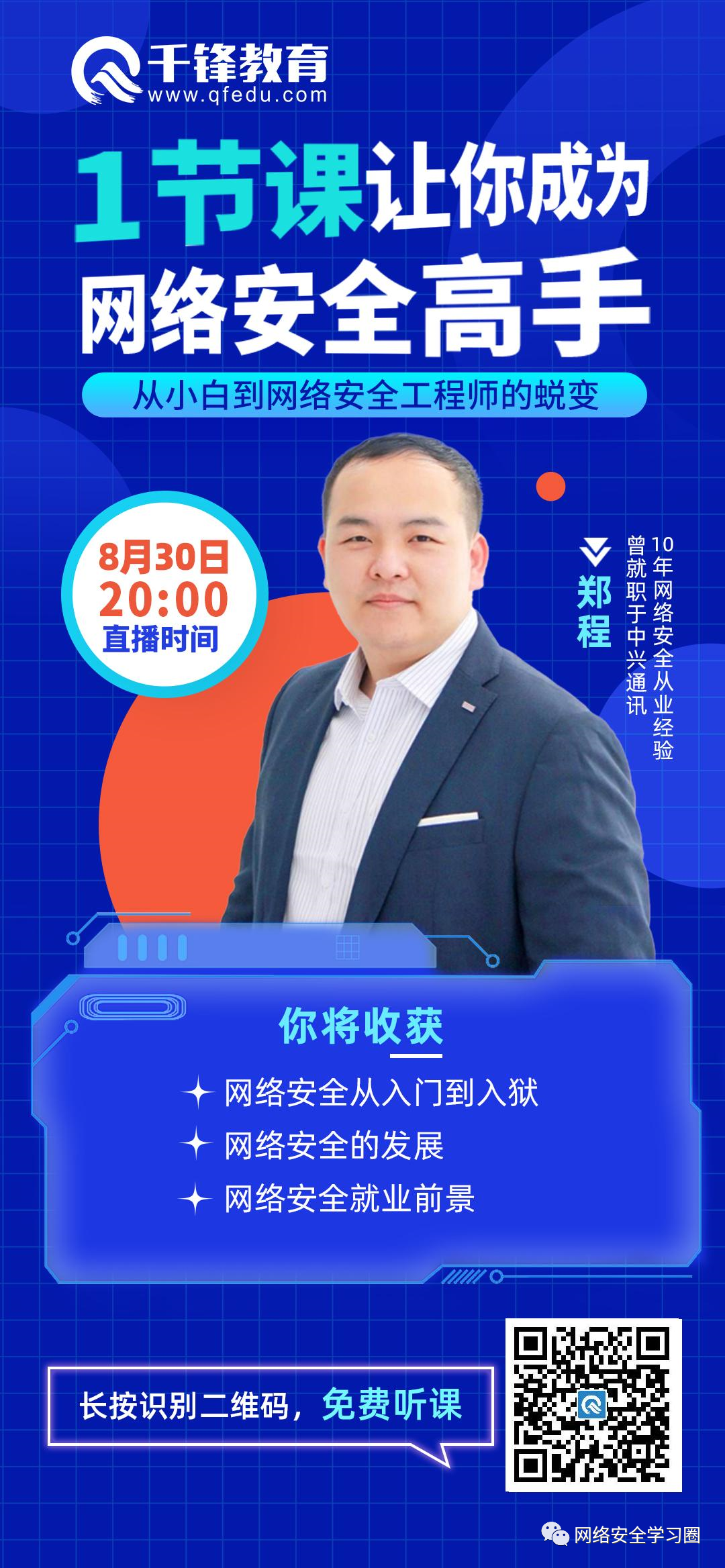 🕗8月30日晚20:00,千锋网络安全郑程老师