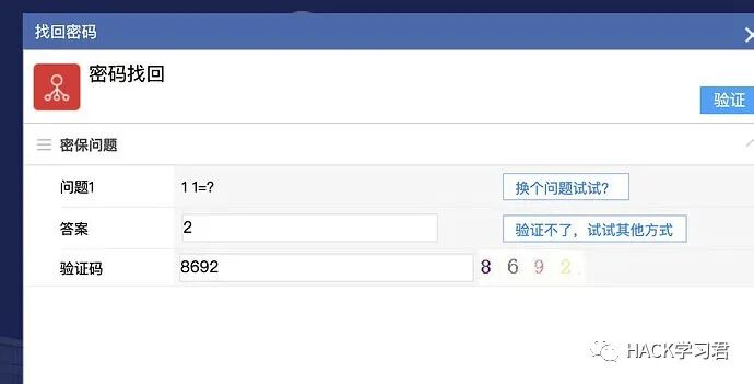 此时把重点转移到泛微OA上,因为之前信息搜集到OA的系统管理员名称为sysadmin,然后想到系统有找回密码的功能,尝试看看能不能捡到漏,结果确实把我整无语了: