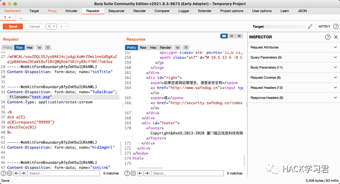 尝试绕过(空文件名)不确定是否绕过,官网的防护也挺严格的,burp没有返回文件路径且前台无法查看文件地址,导致最终没有getshell,尝试了很多上传点,要么是waf绕过但是有白名单要么是上传成功没有绝对路径且文件名是随机的,暂且不针对文件名做爆破,点到为止。