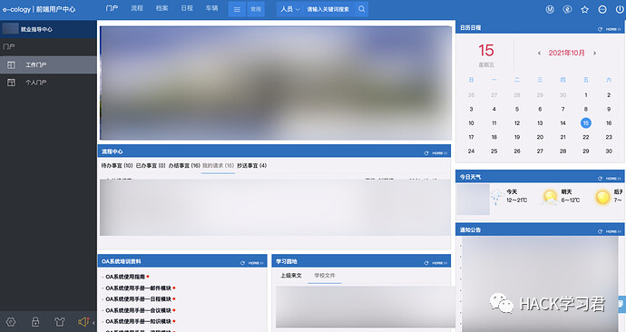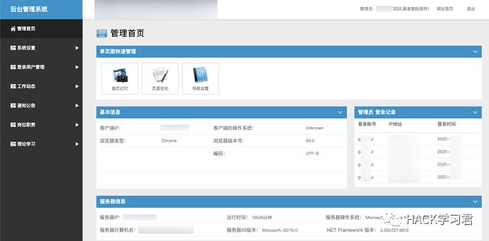 下面是内网的方面,打内网第一步就是应该先找到存活IP段,办公网我们可能是访问不到的,但是业务内网可能是通的,本身还想拿工具探测一波存活IP的,后想到由于之前进到了学校官网的后台,后台主页有显示服务器的IP为:172.16.XX.XX 是内网IP,于是直接进行一波信息收集