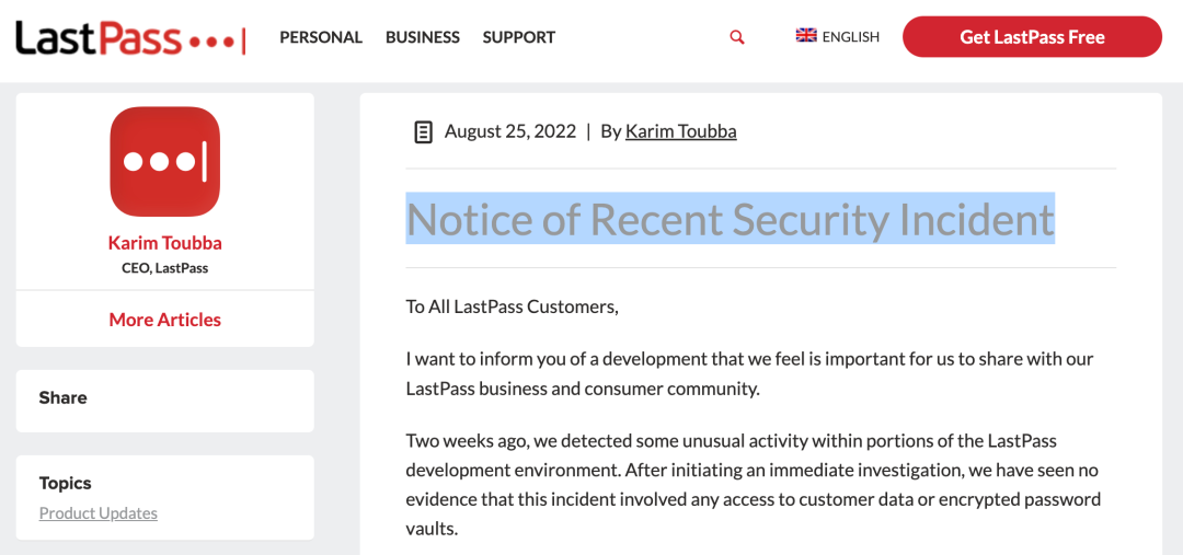 https://blog.lastpass.com/2022/08/notice-of-recent-security-incident/