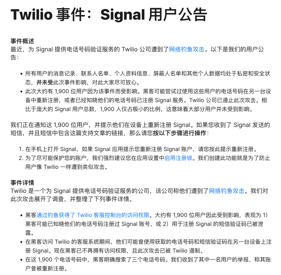 前不久 Twilio 刚遇到员工钓鱼被入侵,甚至影响到 Signal。