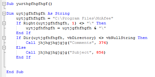 宏代码首先判断受害者终端是否包含McAfee路径。