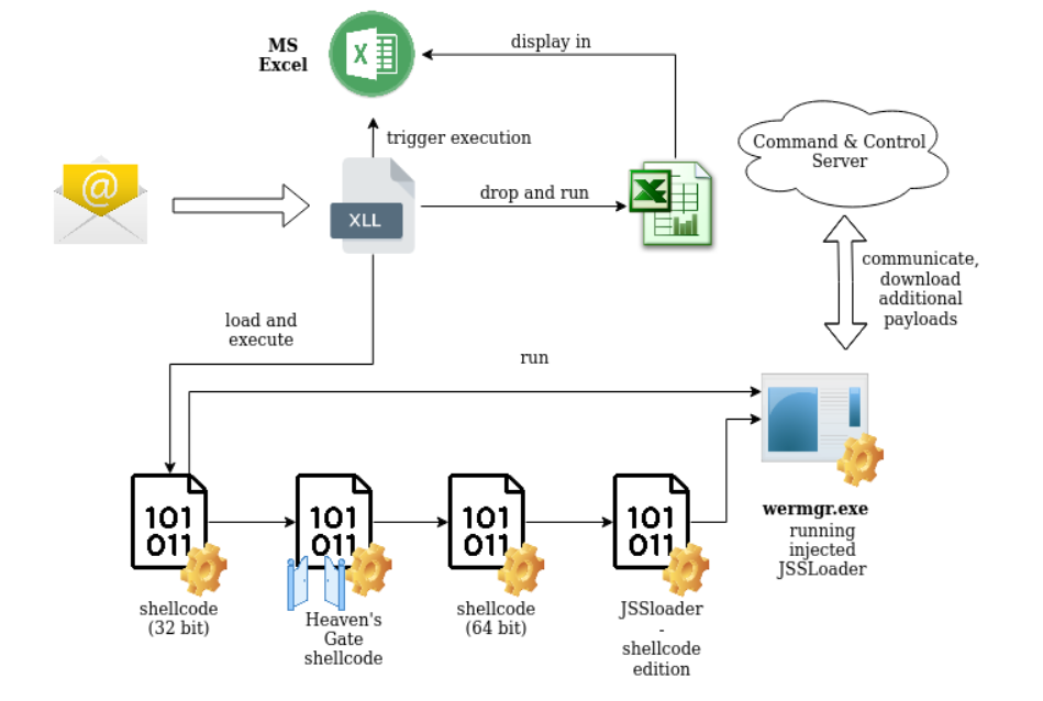 今年早些时候,Morphisec和Secureworks描述了这个小组使用的一个新组件,它以XLL格式交付,这是导致另一个恶意软件(称为JSSLoader)的攻击链中的第一步。分析,发现FIN7当前使用的恶意软件是对JSSLoader的又一次重写,添加了新的扩展功能,主要包括数据泄露等。