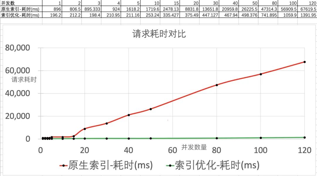 (注:由于长尾会造成 2-3s 的抖动,原生 Lucene 索引查询耗时 10s+,2-3s 的抖动影响不大,优化后的索引只需要数百毫秒,2-3s 抖动造成结果严重失真,因此需要先进行 IO 优化)