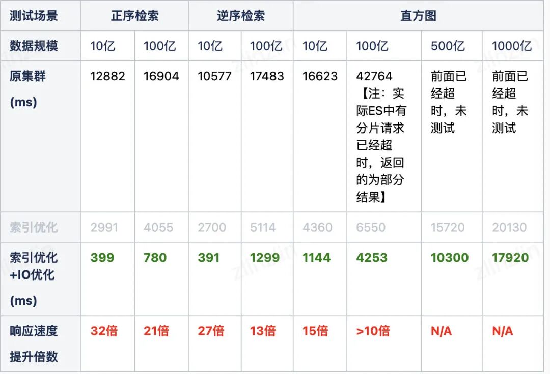 而在离线测试中,时序搜索引擎的性能比原生 Lucene 提升了 50 倍,响应速度提升了 5 倍;上述相关功能已经在 CLS 上全量应用,在最消耗性能的冷数据场景,测试结果显示各类核心操作的响应速度均有 10 倍+提升。