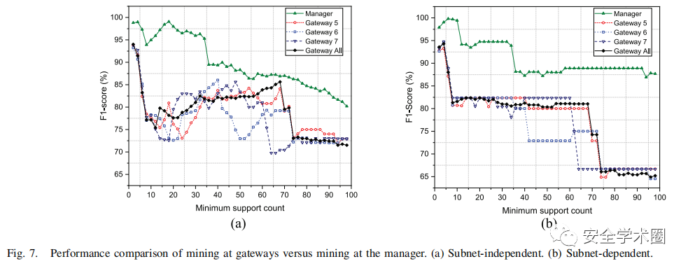 实验二:测试空间相关性在攻击阶段检测中的影响,即是否通过安全管理器装置关联不同网关的警告,实验表明安全管理器效果更好。