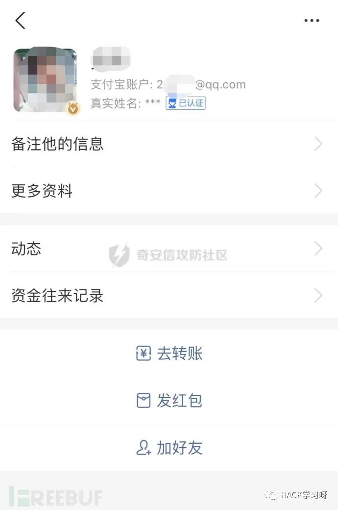 最后通过手机号查询到了微信,支付宝,姓名,微博,个人自拍照。