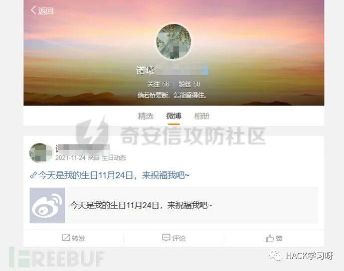 有了QQ邮箱即有了QQ号,就可以检索很多信息,于是进行检索得到了QQ绑定的手机号和微博。