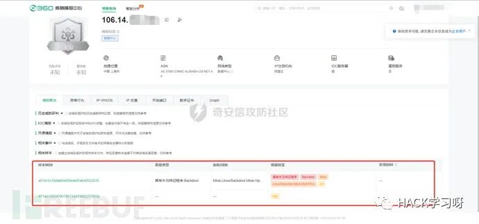 通过微步情报中心分析得出是未知安全,估计是没来得及做更新,于是换其他情报中心测试。