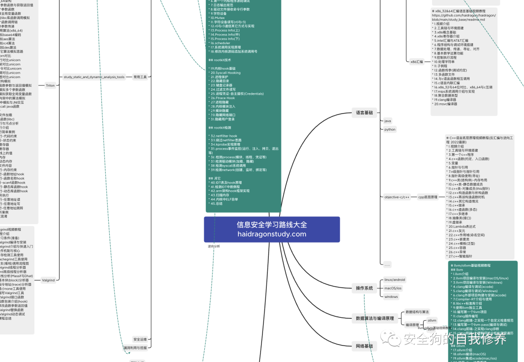 首先还是非常感谢支持我的那些同学们,没你们的支持很难坚持到现在(哪怕是过来加个好友聊几句)。本人从事安全行业6年左右,从农村到长沙到一线再回长沙,从以前的c语言(其时那个时候电脑都不会用。)都不知道是什么,不知道能干什么,到2016年年底开始在网上写博客。吸引了无数刚刚出来的萌新小伙伴,开始建议要我系统的写,但是本人一直是一个新生代的农民工,一样要靠上班养家糊口,从19年开始正式下班业余时间线上录课教学。2022年又过大半,这里更新了下haidragon视频脑图,看看现在新增了哪些教程。