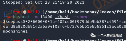 开始进行明文密码枚举,使用 keepass2john 生成用于碰撞的 hash: