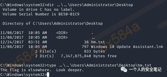 尝试在管理员的桌面文件夹寻找 flag,发现存在一个 hm.txt 的文件,但是无法查看提示锁定。