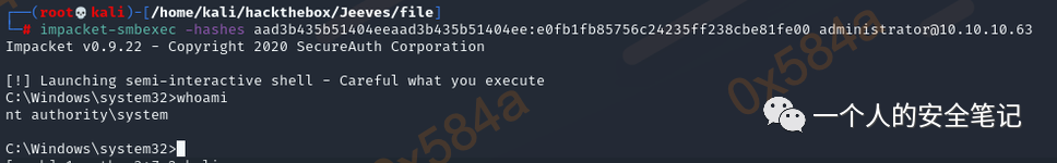 很好,就是 admin 的 hash,hash 传递成功完成提权。