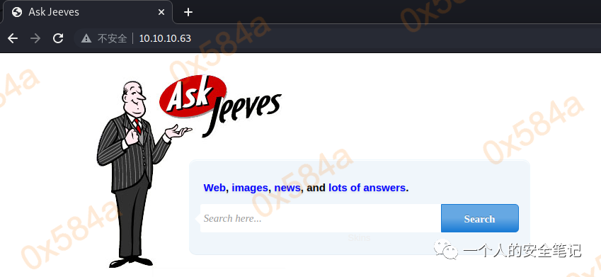 浏览器访问 80 端口上的 HTTP 服务,看到提供搜索服务: