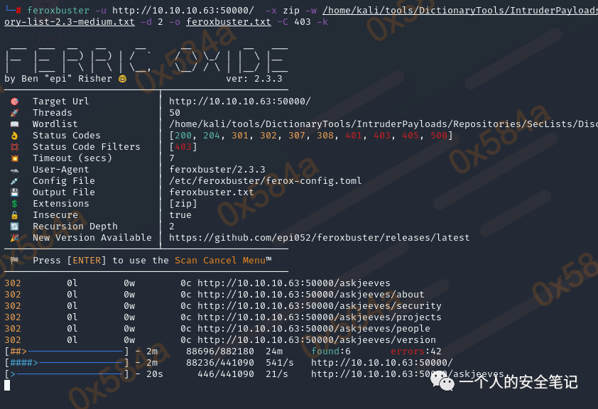 使用 feroxbuster 工具对 URL 进行目录枚举,尝试看是否存在隐藏内容: