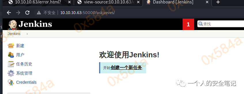 从结果中看到存在一个 /askjeeves 路径,访问后看到 Jenkins 服务,存在未授权访问能访问管理页面: