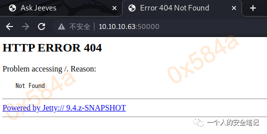 在对 80 端口枚举尝试无果后关注 50000 端口,默认是一个 404 状态的页面: