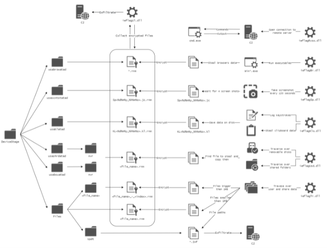 Donot(又名 APT-C-35)组织疑似是印度背景的威胁组织,至少活跃于2016年,主要针对印度、巴基斯坦、斯里兰卡、孟加拉国和其他南亚国家地区的政府、军事组织、外交部和大使馆展开攻击。近日,Morphisec 研究人员监测发现 Donot 组织瞄准巴基斯坦国防部门等政府部门展开网络钓鱼攻击,并在活动中更新了其 Jaca Windows 恶意软件工具包,改进了信息窃取等模块的功能。这些模块还扩展了广泛收集数据的功能,例如按键记录、屏幕截图、文件和存储在 Web 浏览器中的信息。此外,更新的工具集的一部分还包含了一个反向 shell 模块,它允许攻击者远程访问目标设备。威胁组织通过向目标组织投递包含恶意 RTF 文档的鱼叉式网络钓鱼邮件,欺骗用户启用宏将 shellcode 进程注入内存,然后利用第二阶段的 shellcode 向 C2 发送受害者设备信息及从远程服务器下载信息窃取模块。该模块会收集受感染设备的系统信息并将其回传至恶意 C2 服务器,然后持续其他恶意操作。![]()