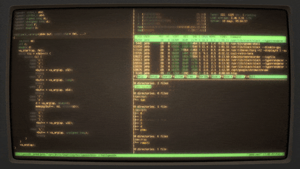 也就是说,让我们找点乐子,用一些老式的无意义数据和代码片段组成的面板填充我们的屏幕(好吧,这些数据可能有一定的意义,但是没有上下文)。虽然有很多花哨的 GUI,但是我们为什么不直接使用标准的 linux 终端呢?为了更老派的外观,可以考虑使用 Cool Retro Term:一个酷酷的复古终端。下面我会用 Cool Retro Term,因为它看起来确实 100% 酷。