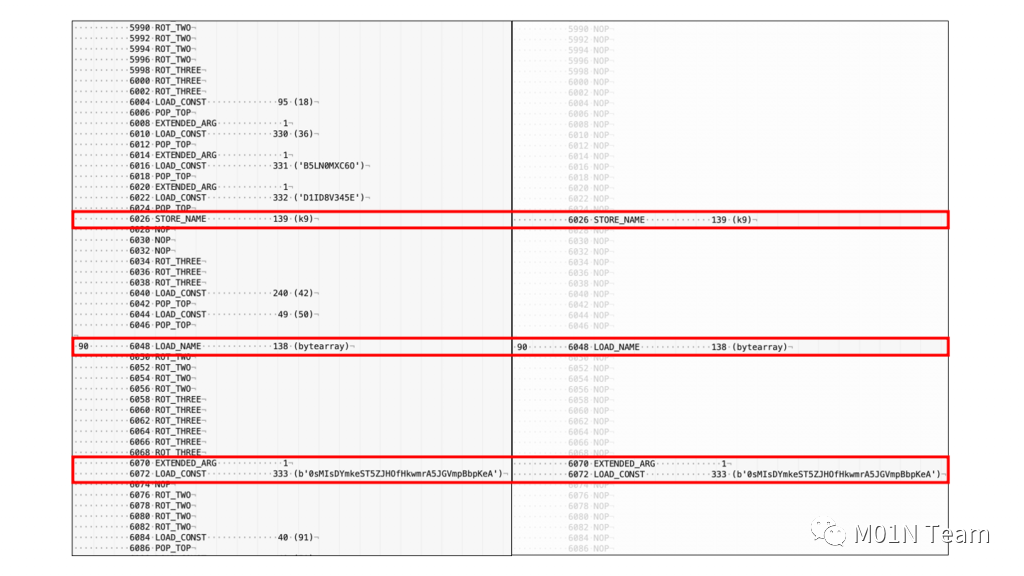 插入垃圾代码破坏Python字节码反编译,右侧去除了花指令