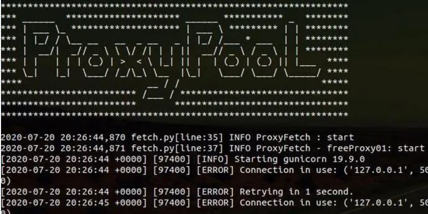 # 如果已经具备运行条件, 可用通过proxyPool.py启动。# 程序分为: schedule 调度程序 和 server Api服务# 启动调度程序python proxyPool.py schedule# 启动webApi服务python proxyPool.py server