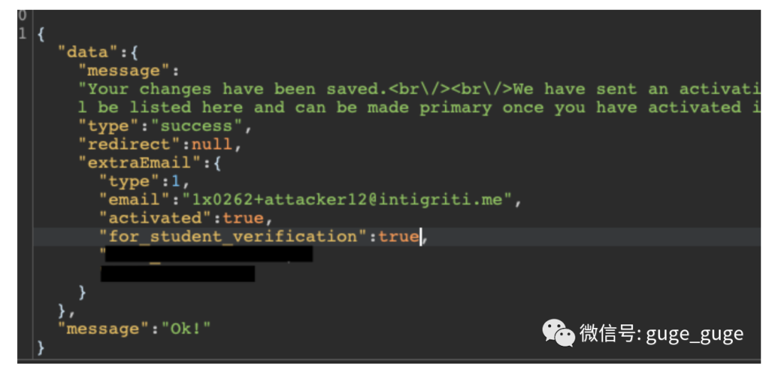 3、 “activated”和“for_student_verification”这两个不安全参数会返回 false,我们将两个参数更改为 true 后提交请求。