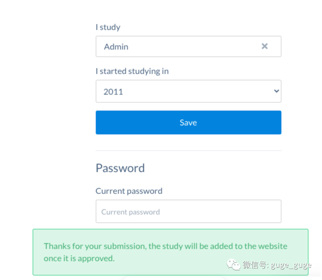 1、 正如上面所说,在“I study”字段中,我们可以添加自己的特殊学习信息,例如,让我们输入“admin”并发送请求
