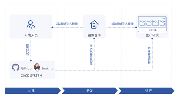 • 在基础镜像构建阶段即启动镜像扫描,使用数字签名来验证镜像的真实性