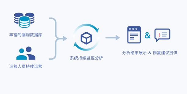 鉴于漏洞的持续增长,需要持续监测新产生的漏洞。青藤蜂巢可以扫描镜像中应用组件的漏洞,对二进制包进行逐层深度扫描,快速分析漏洞所影响镜像的分布范围,并以可视化方式展示漏洞详细信息,包含了漏洞类型、严重程度、漏洞描述、标签、检查脚本、修复建议等,可以更好地帮助用户完成漏洞评估,帮助用户查找和定位问题,为用户漏洞修复提供指导。