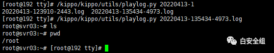 chmod +x /kippo/kippo/utils/playlog.py这个playlog就是回放操作的文件,给他加一个执行权限然后我们运行并且指定记录文件