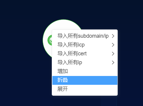 接下来我们还是使用“黄金右击”功能,右击 domain 节点(绿色图标)中的 root,点击导入 subdomain/ip,即可一秒导入所有关联的子域名和 IP 信息,从下图中可以看到,本次导入了 61 个子域名,42 个 IP 资产信息。