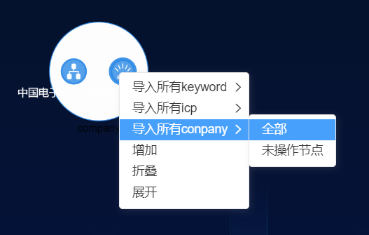 然后在生成的图标中,右键根节点 root,选择导入所有 company 这个选项。