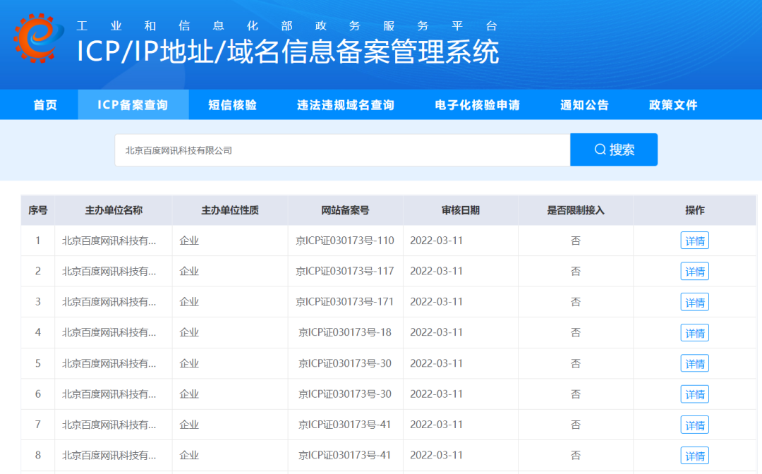 当攻击队获取到目标公司名称的时候,就可以在工信部的域名备案管理系统上进行查询,该公司备案的域名/IP地址都有哪些。查询地址:https://beian.miit.gov.cn/