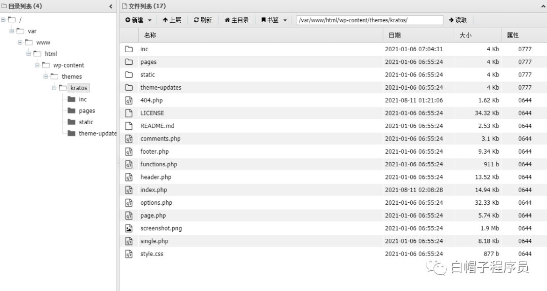 接下来就简单了,我已经看到shell在招手了,在后台修改主题文件的配置,加入一句话木马
