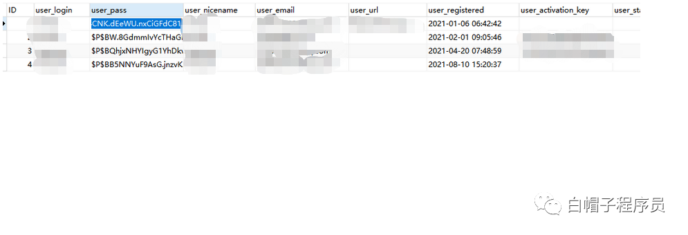 随便整个mysql远程连接工具,找找管理员密码, WPS的账号信息存在wp_users里面
