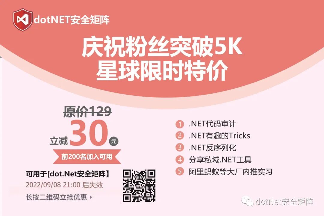 原价¥129当前只需¥99, 以后星球价格只会越来越高,对.NET安全关注的师傅们动动手加入我们吧!