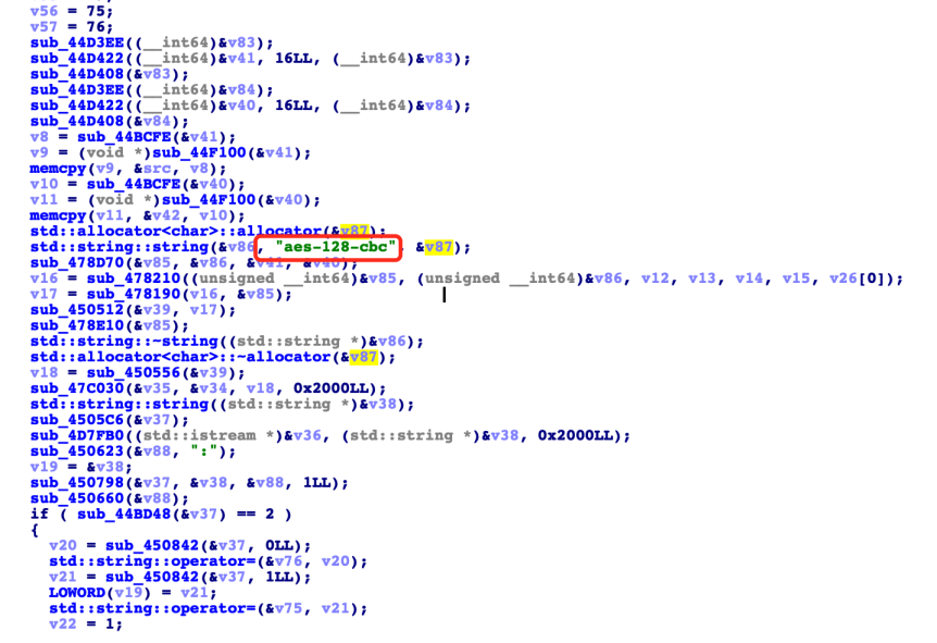 | | Deobfuscate/Decode Files or | FontOnLake backdoors 通过 AES 加密 C&C 地址和通信。 |