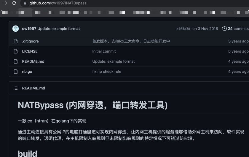 | https://github.com/cw1997/NATBypass | | READNE.md为简体中文的,流行于使用简体中文的黑客人群 |