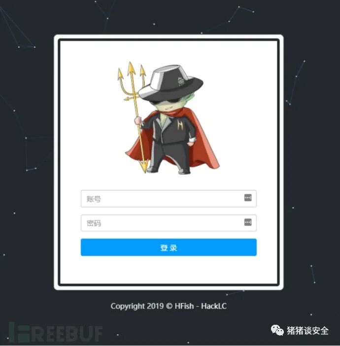 页面展示如下, 一般开放在9001端口, 查询title "HFish - 扩展企业安全测试主动诱导型开源蜜罐框架系统", 可以检索到一部分开放在公网的