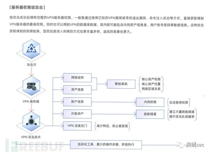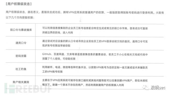 确认好目标后,需要利用现有漏洞,进行脆弱点突破VPN边界,进入内网以供后续深入利用。突破手法从成果上来讲大致分为两类:用户权限级攻击和服务器权限级攻击。