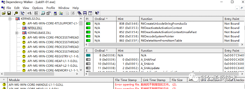 如果程序被加壳会发生什么,显示的信息不全,如查看导入函数,只有四五个,正常情况有十几个或者几十个