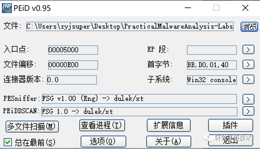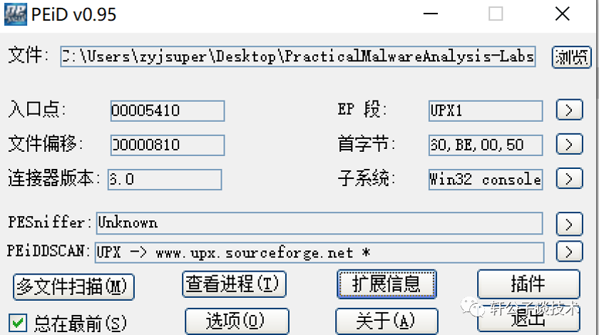 2. 检测pe头 发现被加壳了 存在upx壳
